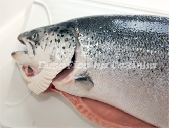 Comprar um salmão inteiro e cortá-lo em filetes em casa, obriga a um investimento inicial, mas feitas as contas, fica muito mais económico e tem a vantagem de poder ser cozinhado ou congelado de forma mais fresca do que quando os lombos estão em exposição, já cortados há horas.