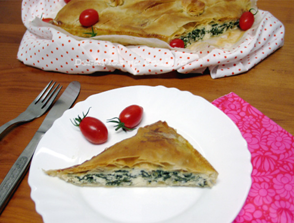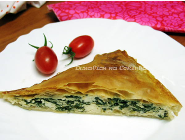 Este é um prato típico da Grécia e consiste numa tarte com massa filo, onde o recheio é de espinafres, queijo feta e requeijão.
