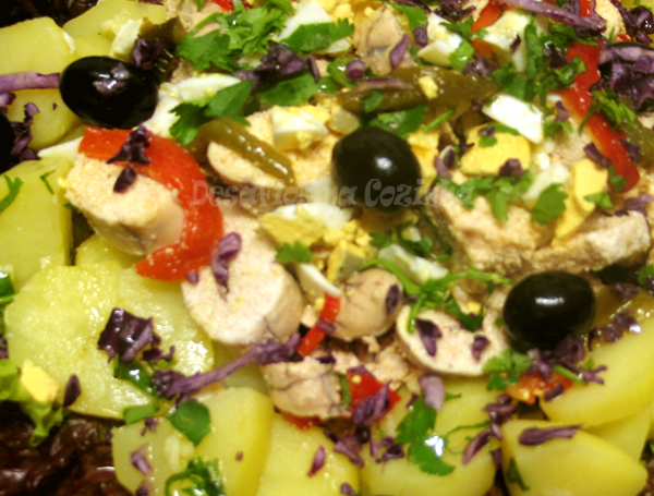Continuando a tentar fugir aos fritos e às gorduras, mas não querendo passar um fim de semana sem um petisco diferente e animado, fiz uma salada de ovas bem guarnecida, de forma a servir de prato principal.