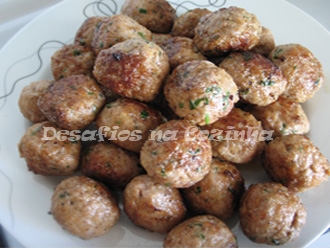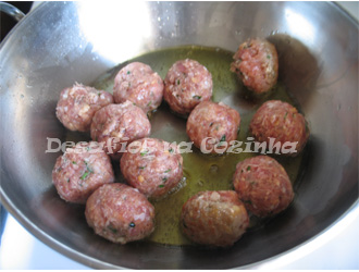 6. Numa caçarola deitar azeite e fritar as almôndegas, abanando constantemente para não queimar;