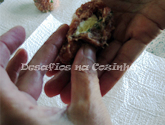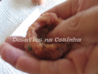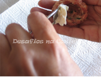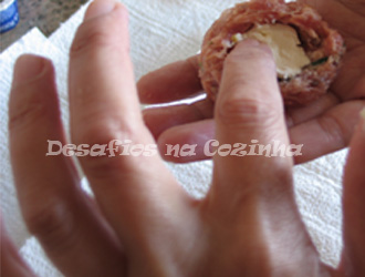 Fechar a cavidade cuidadosamente e de forma ao queijo ficar completamente no interior da bola de carne;