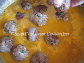 11. Se o molho estiver muito grosso, acrescentar um pouco de água e colocar as almôndegas no molho para acabarem de cozinhar;