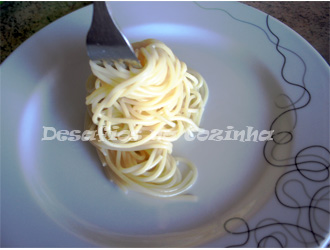 Quando cozido deve ser escorrido, se aí o esparguete começar a colar deve ser passado por água fria rapidamente;