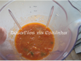 10. Deixar reduzir o vinho e triturar o molho no liquidificador. Deitar o molho triturado de novo na caçarola;