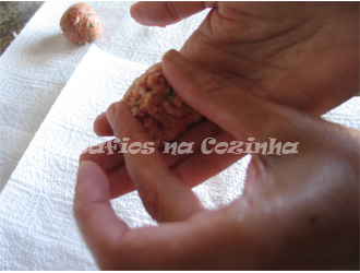 Para as bolas ficarem lisas, as mãos podem ser passadas por água, de modo a ficarem húmidas e facilitarem o trabalhar da carne;