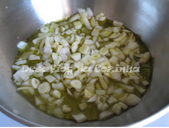 7. Se o azeite ficar muito queimado, deitar fora e fazer com azeite novo um refogado com cebola e alho;