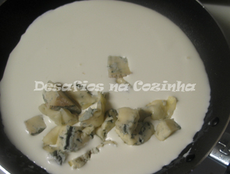 3. Num tacho pequeno ou frigideira, deitar as natas e o queijo partido aos pedaços.