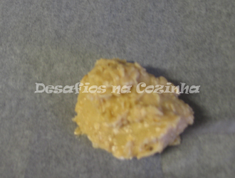 4. Deitar colheradas num tabuleiro forrado com papel vegetal ou untado com manteiga e polvilhado com farinha;
