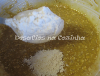 3. Acrescentar a farinha misturada com o fermento e o bicarbonato de sódio.