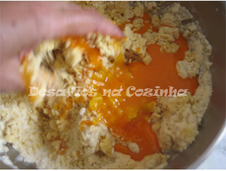 3. Juntar as gemas batidas, continuando a misturar;