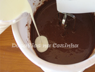 2. Juntar o chocolate derretido ao creme e temperar com uma pitada de sal;