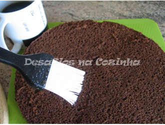 6. Cortar o bolo transversalmente em uma ou duas partes e pincelar cada uma delas com coca cola;