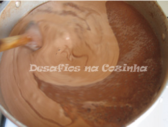 8. Levar ao lume brando a mistura e ir mexendo sempre. É um processo um pouco demorado.