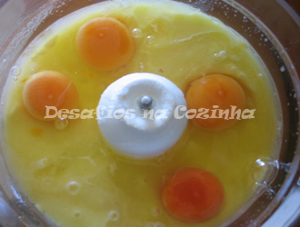 3. Adicionar os ovos inteiros e triturar mais um pouco;