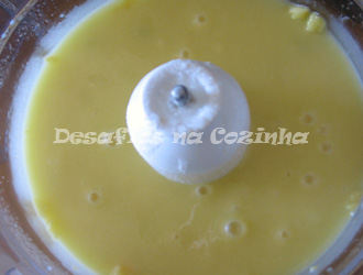 2. Na liquidificadora ou robot de cozinha, colocar a manga descascada e partida, o leite, o óleo e o açúcar.
