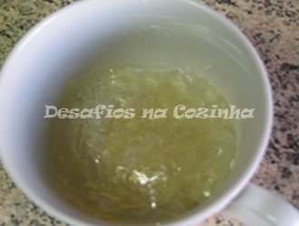 Escorrer a gelatina e levar a derreter no microondas, com uma colher de sopa de água. Não deixar ferver;