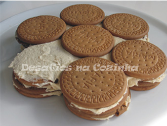 8. Seguidamente outra de bolachas mas já mais embebidas em café, outra de creme, bolachas embebidas em café, e assim sucessivamente até as camadas de bolachas serem oito (pode ser menos ou mais);