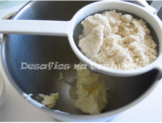 1. Numa tigela deitei a manteiga e o açúcar peneirado para o creme ficar leve e sedoso.