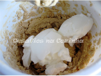 4. Juntar aos poucos a farinha peneirada com o fermento até ficar um creme homogéneo;