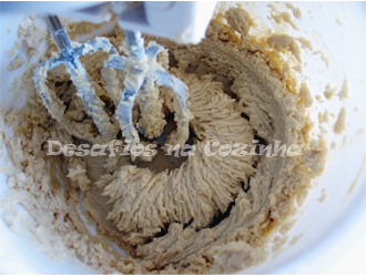 1. Bater o açúcar com a manteiga até ficar em creme;