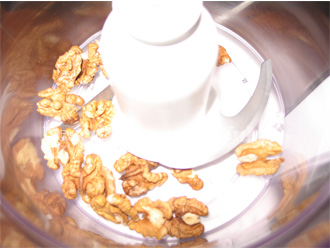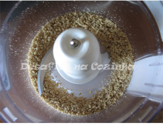 6. Triturar as 35 g de nozes (a quantidade é mesmo só esta para o bolo não ficar muito pesado);