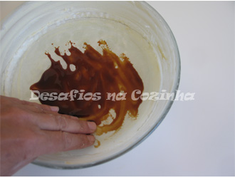 6. Se optar por misturar nozes picadas, deve passá-las por farinha, sacudir bem e juntar à massa do bolo, envolvendo;
