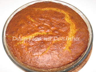 10. Deitar a massa do bolo na forma e levar ao forno pré-aquecido a 180º cerca de 40 minutos a uma hora ou até verificar que está cozinhado, espetando um espeto ou palito;