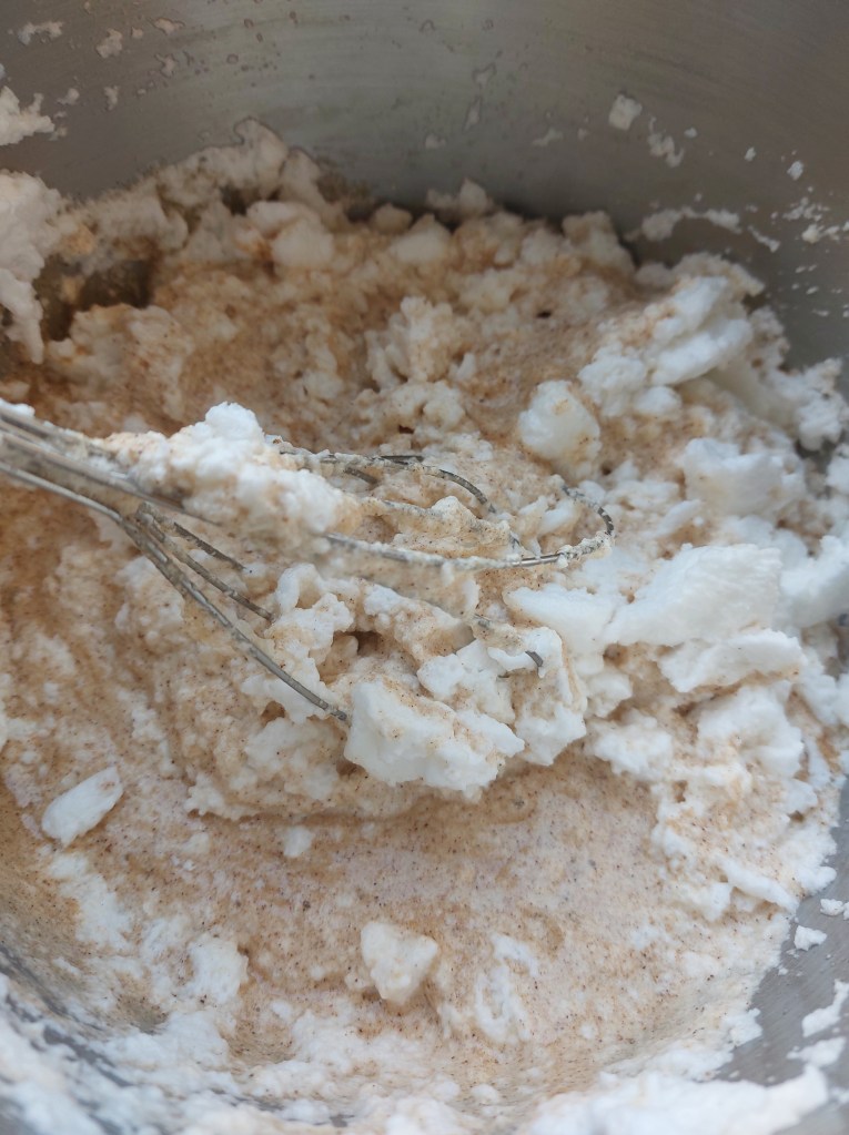 - Bater as claras em castelo e envolver no preparado anterior. Juntar a canela, a erva doce e a raspa do limão, envolvendo sempre;
