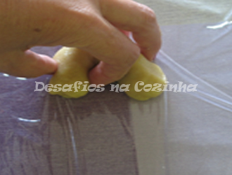 7. Colocar os biscoitos num tabuleiro forrado com papel vegetal ou untado com manteiga e polvilhado com farinha.