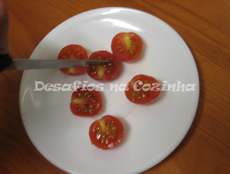 Com a ponta da faca fazer uma pequena abertura no interior do tomate, para encaixar o queijo.