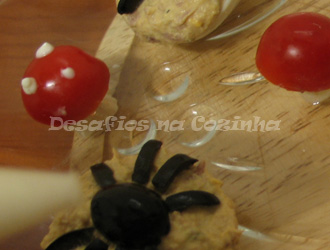4. Com um bico fino de um saco de pasteleiro, fazer pequenas “pintas” de maionese no tomate.