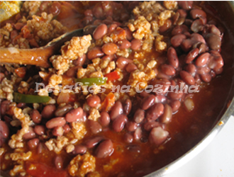 4. Quando a carne estiver cozinhada, adicionar o feijão e alguma água de cozer o feijão, caso necessite de molho.
