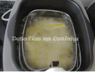 11. Numa frigideira funda ou fritadeira aqueça bem o óleo. Frite o choco de preferência usando uma rede.