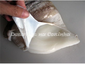 12. Quando tirar o choco da fritadeira coloque-o sobre papel absorvente.