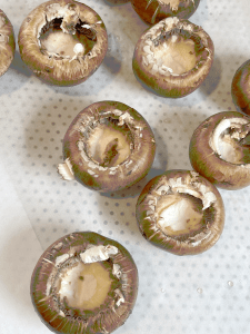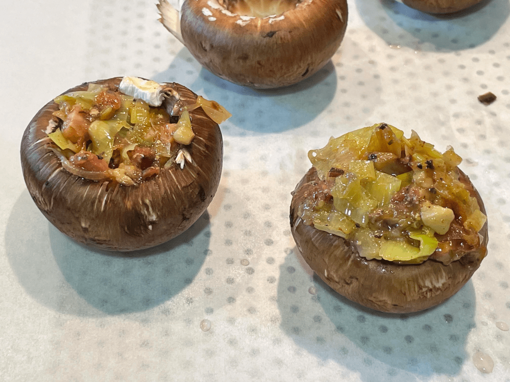 6. Encher os cogumelos com o recheio;