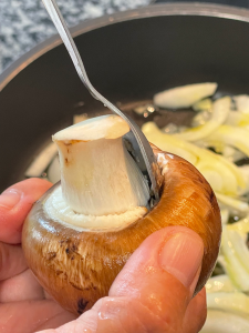 Acrescentar os pés dos cogumelos cortados;