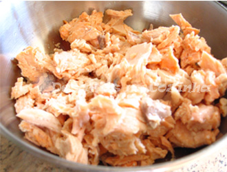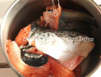 A cabeça, a espinha e outros restos com peixe agarrado podem ser cozidos e aproveitados em pratos onde o salmão é partido em pedaços pequenos, como quiches, empadas, pratos de massa, risoto, etc.