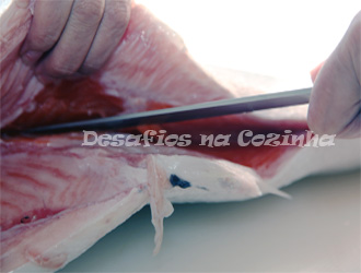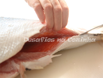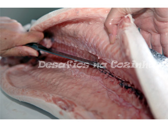 Abrir o peixe até mesmo ao início da cabeça para aproveitar o máximo possível.