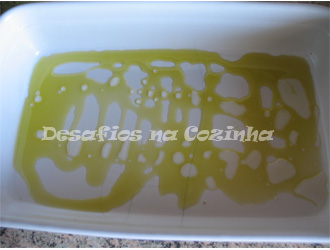 Num tabuleiro de ir ao forno, deitar azeite e vinagre;