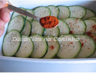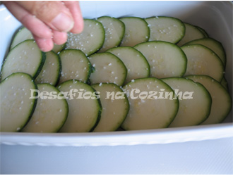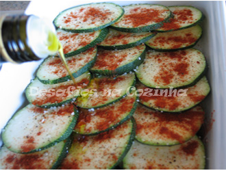 2. Ajustar as fatias de curgete em cima do azeite e vinagre;
