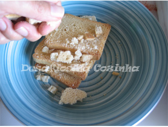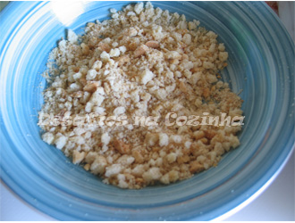 5. Reduzir 4 tostas a migalhas com a mão, não usar o processador, as tostas devem ficar grosseiramente desfeitas;