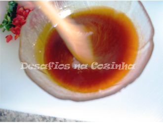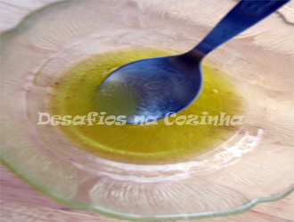8. Numa taça juntar 4 colheres de sopa de azeite com uma colher de chá de vinagre de sidra.