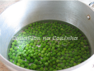 2. Colocar em tachos separados, o ovo e as ervilhas temperadas com sal a cozer. Escorrer as ervilhas depois de cozidas;