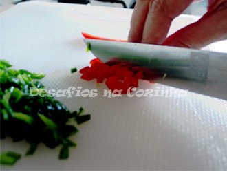 5. Cortar os pimentos em quadrados pequenos;