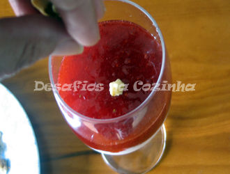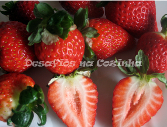 Escolher um ou dois morangos mais perfeitos (consoante o número de taças a preparar) para cortar ao meio.