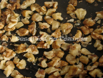 4. Partir nozes em pedaços pequenos e bolachas maria em pedaços, meio desfeitos.