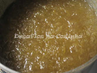 4. Quando os chuchus estiverem cozinhados e o caldo começar a engrossar, retirar as cascas de limão com um pouco do doce e triturar bem com a varinha mágica;