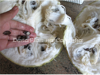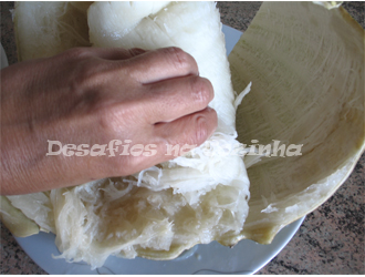 2. Retirar as pevides com a mão e alguns fios amarelados que eventualmente possa ter;