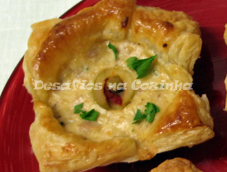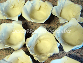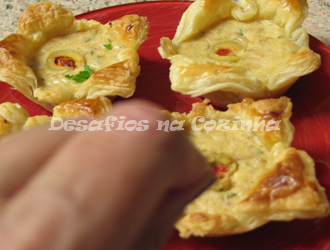 Levar ao forno pré-aquecido a 180ºC, até apresentar uma cor dourada.