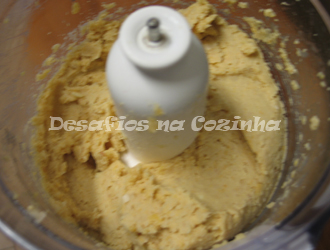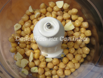 2. Numa picadora juntar o grão, o azeite e os alhos partidos e fazer puré;